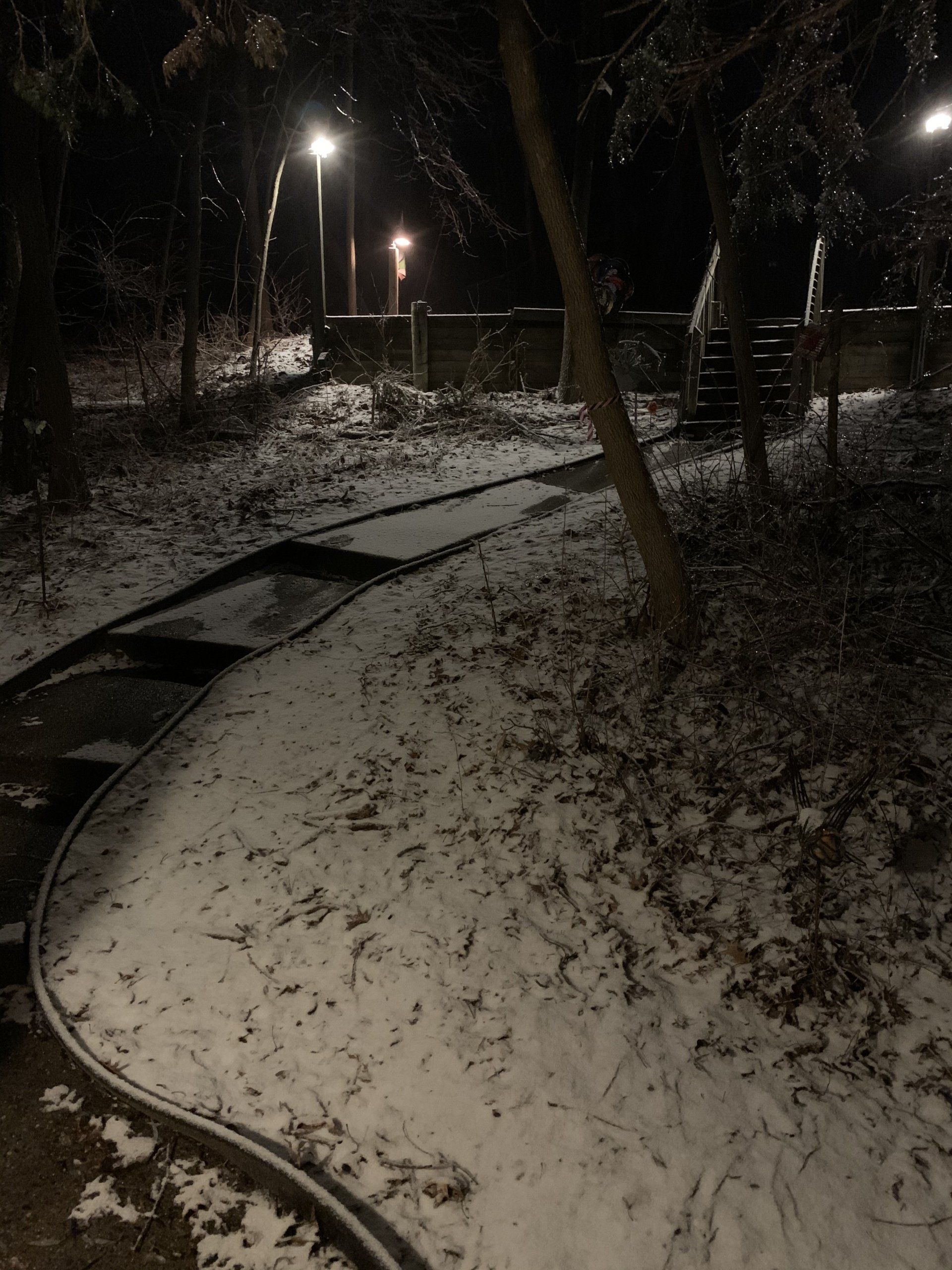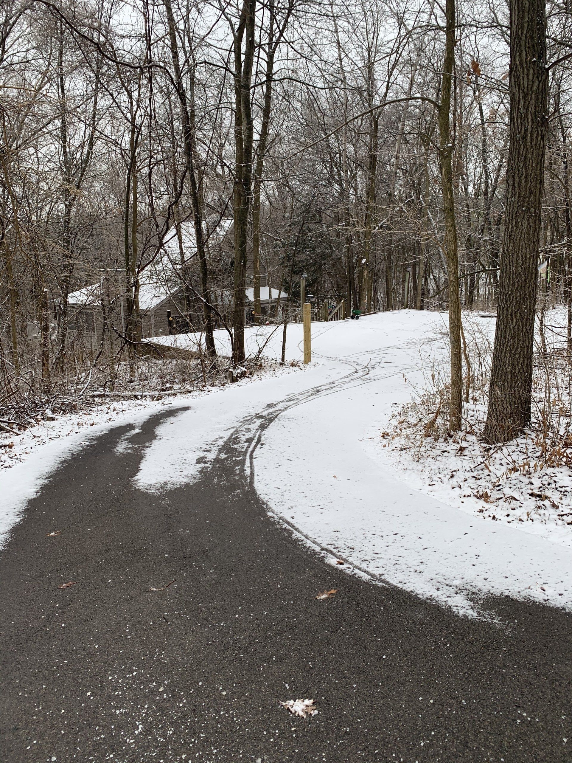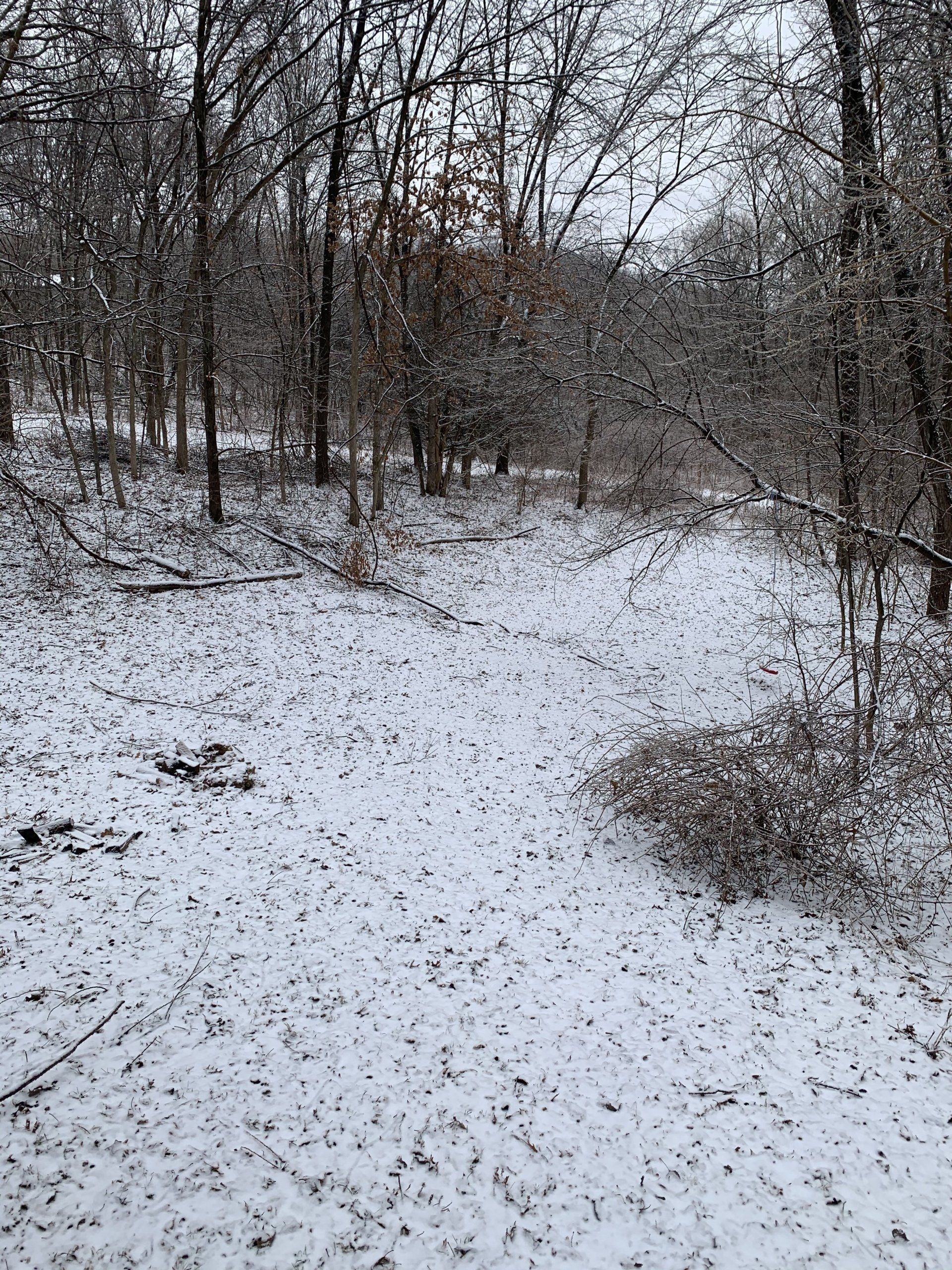 It is a Wintery, snowy afternoon. But, in the Spring, Summer, and Fall the backyard is a beautiful lush green with area enough to spread out and take in the nature.