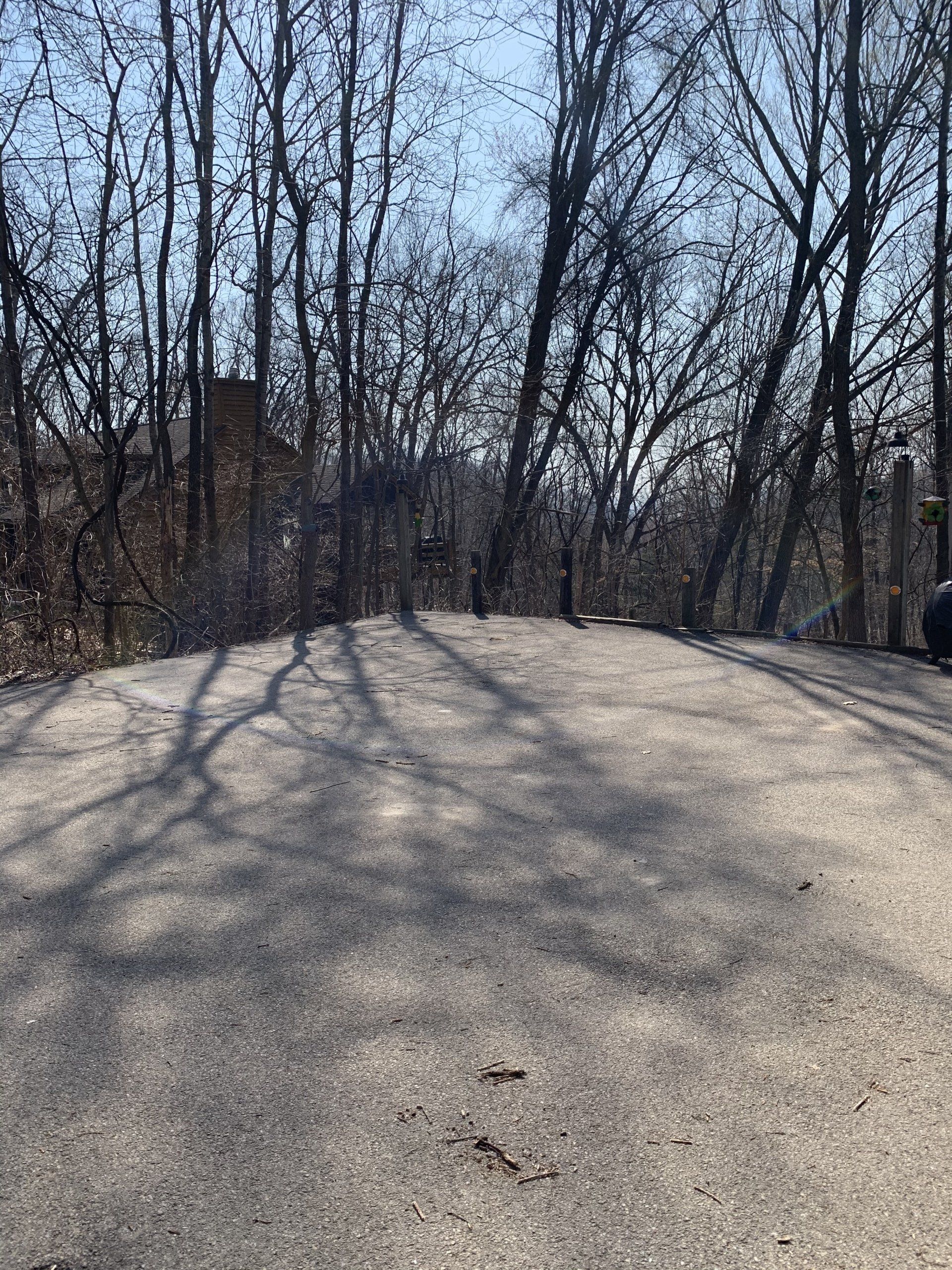 On property parking is plentiful. This is a look at the lower parking pad which will easily accommodate 5 vehicles. There is also an upper parking pad which accommodates 2 vehicles. In combination with the extensive driveway, pack even more cars in!