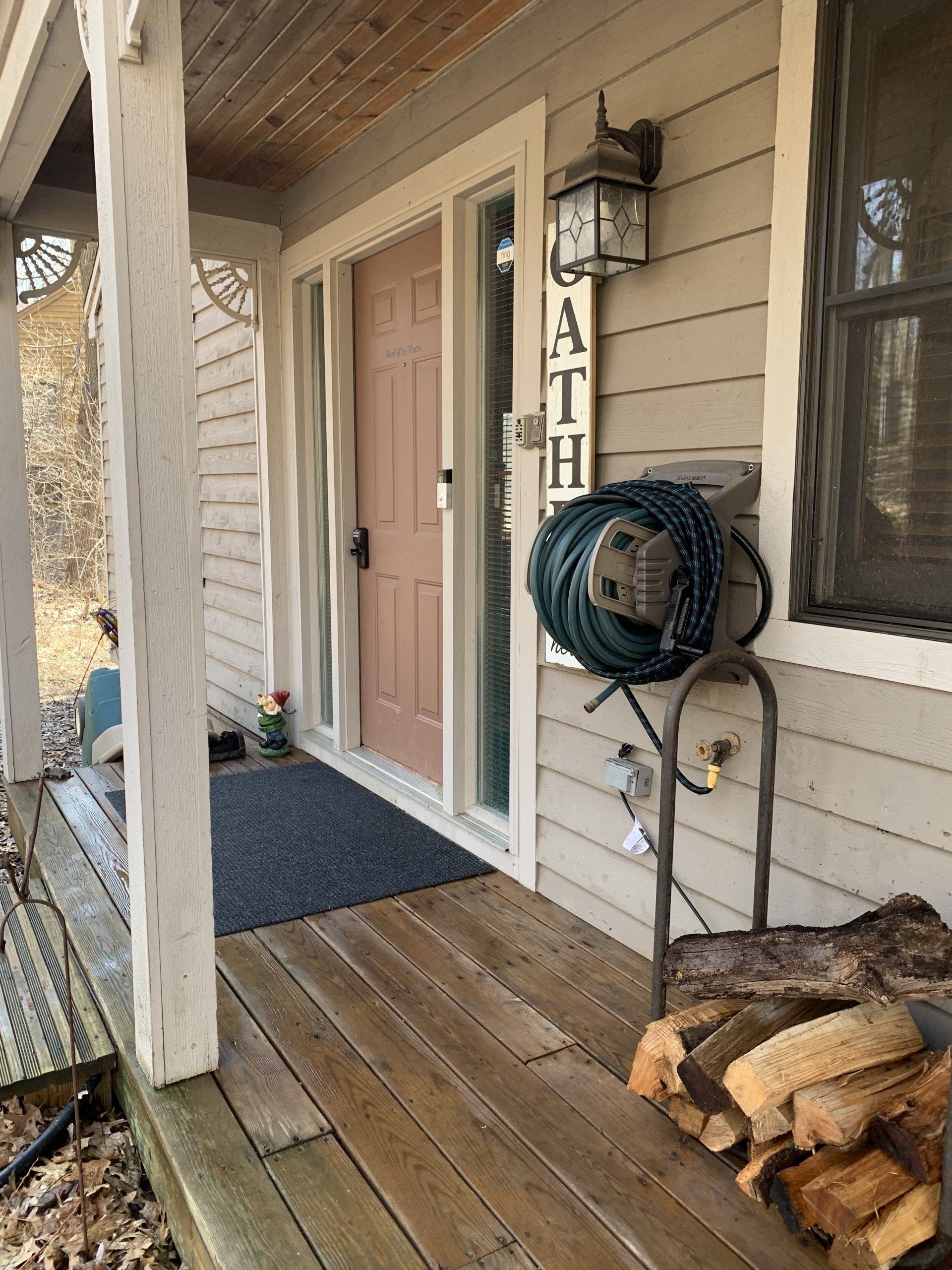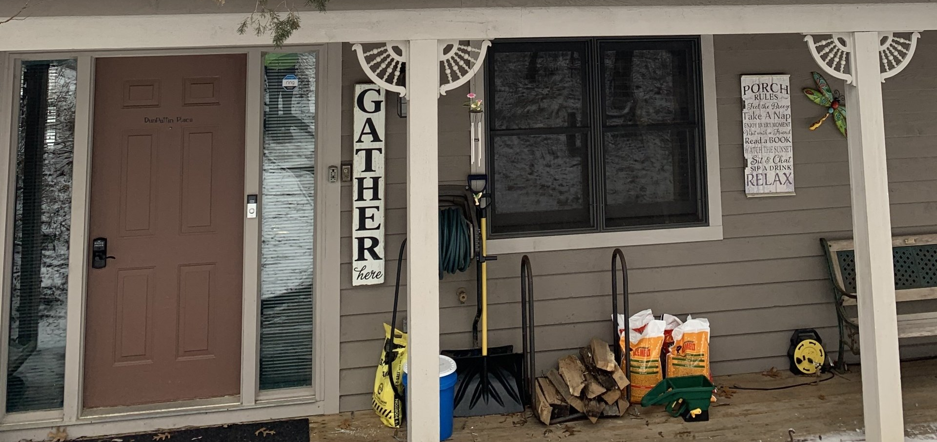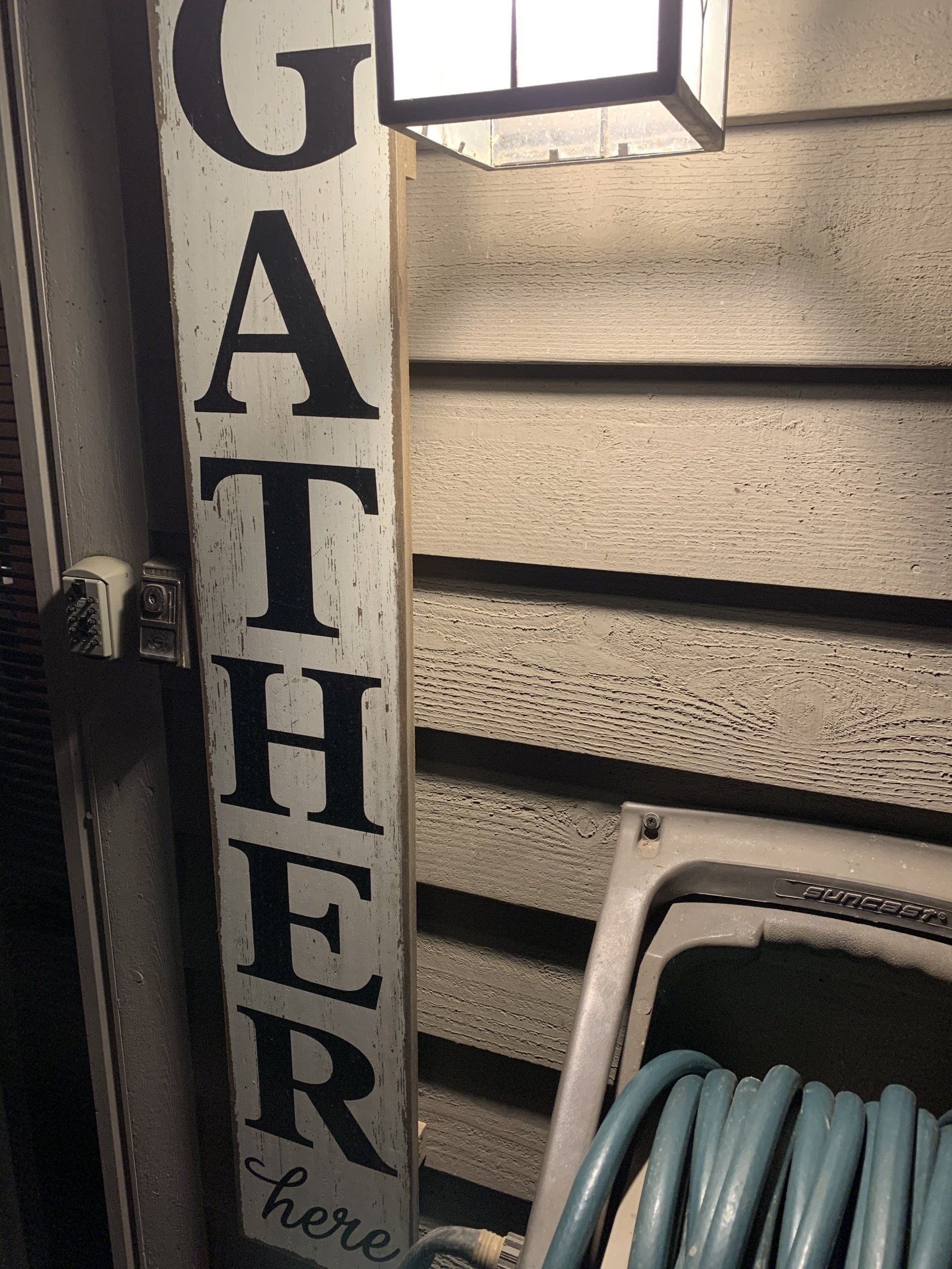 Gather Here; pretty much says it all! It's a few steps down to the entrance area and then a couple short steps up. Welcome to DunPuttin Place!